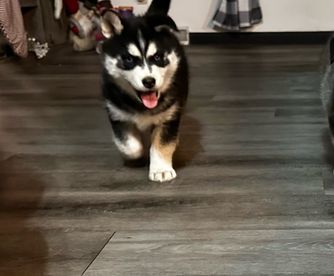 I'm Saundra W., the breeder behind Plush Pomskys located in Minnesota. We are new to the breeding world, but love our family pomskys and husky, we want to be able to share their love and affection with everyone. We are proud to offer our beautiful Pomsky puppies to loving homes! Our dogs are healthy and have great temperaments.