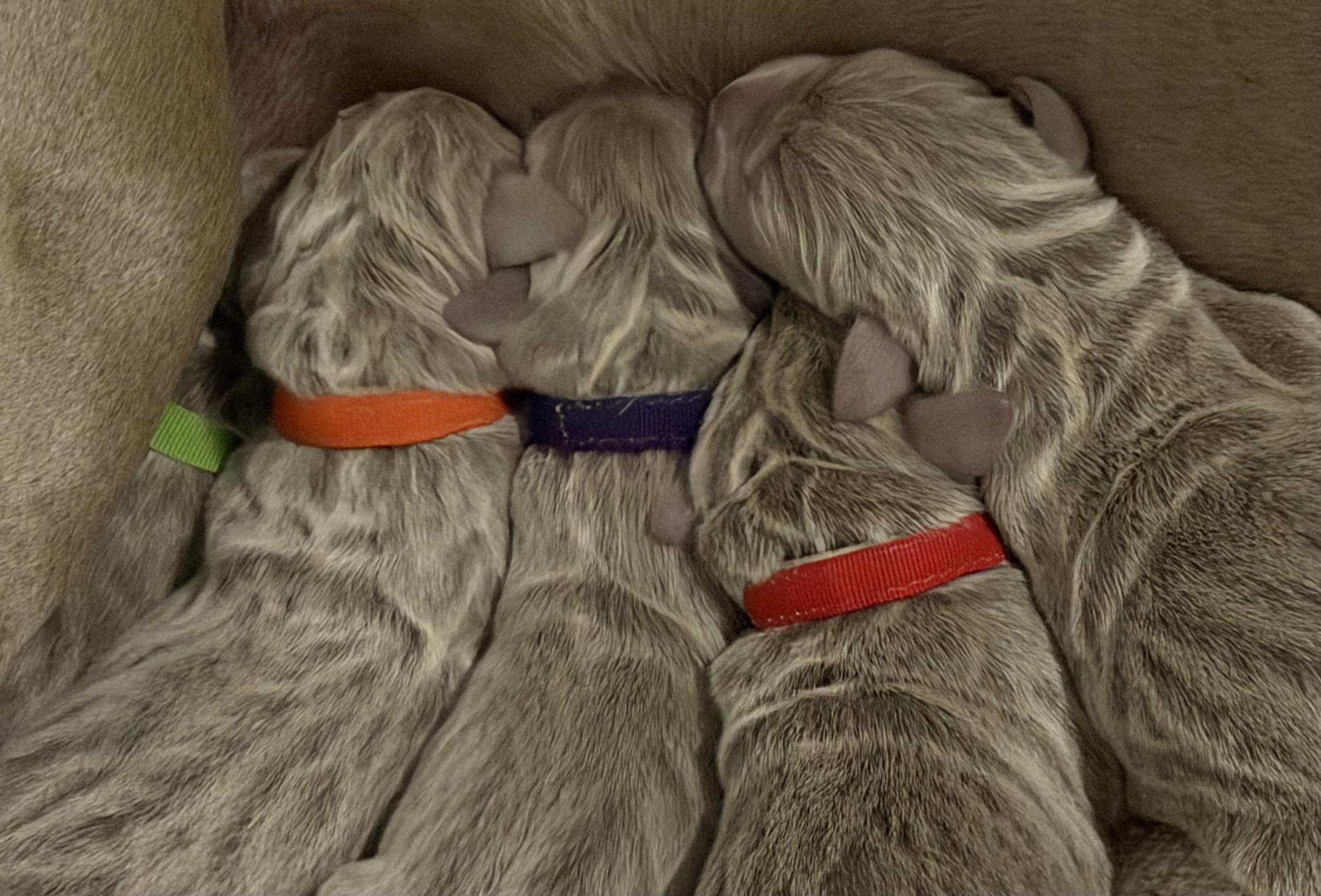 Our Weimaraner puppies are silver gray. Colors will vary depending on the parent dogs.