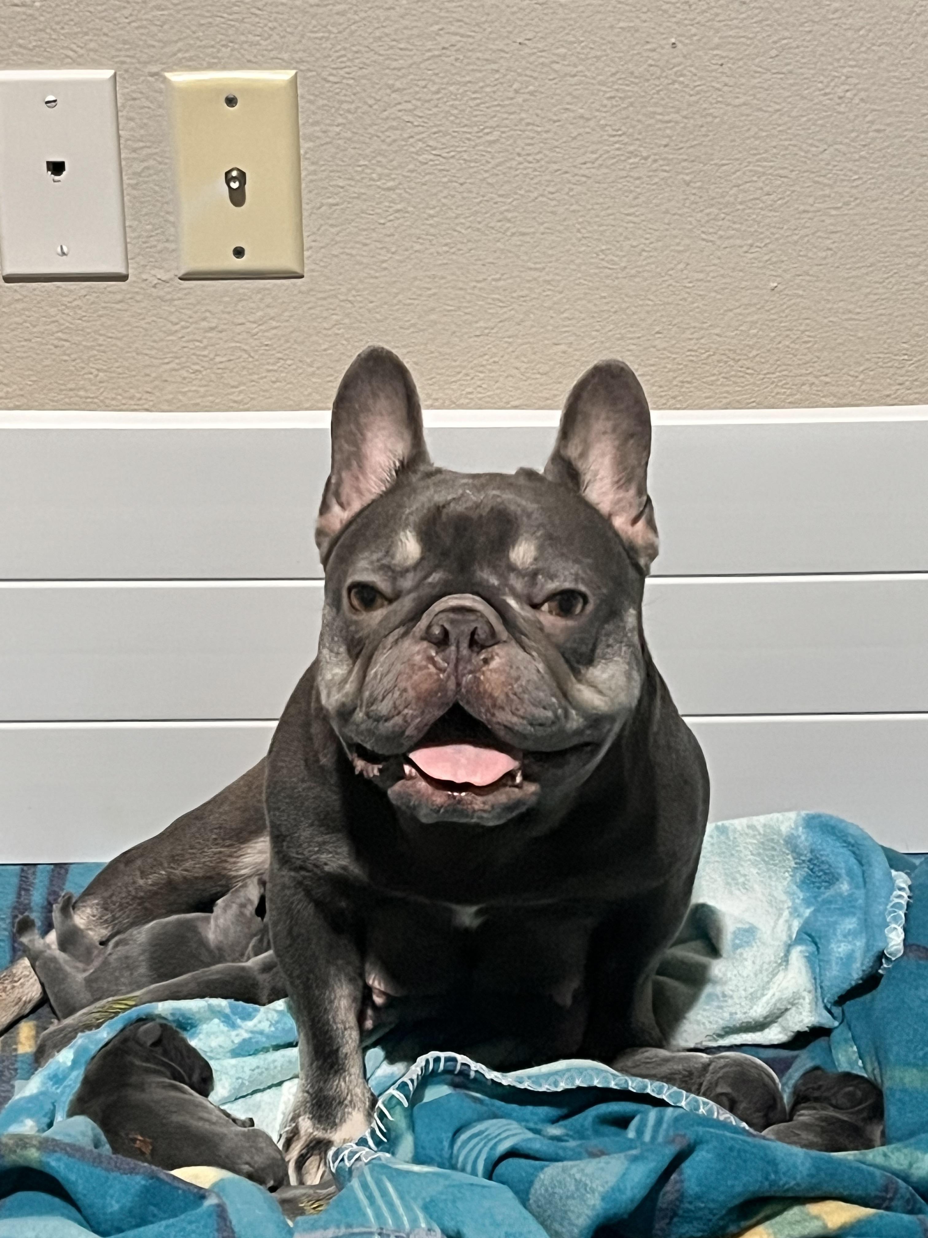 Koda is a lilac and tan French bulldog. She is great with kids, loves to play fetch and with toys. Great breather. Very family friendly pup who loves walks and is fantastic in the car.