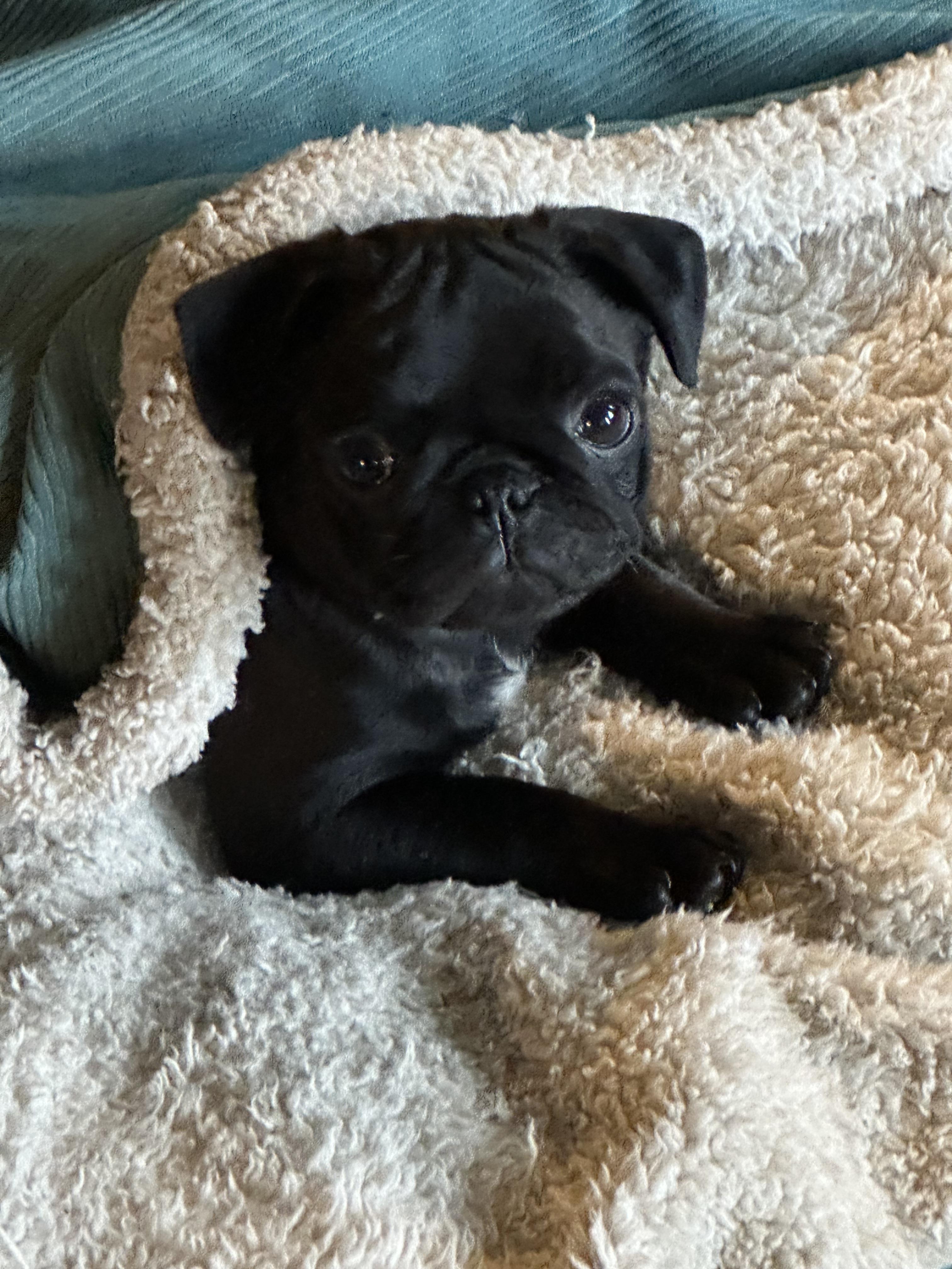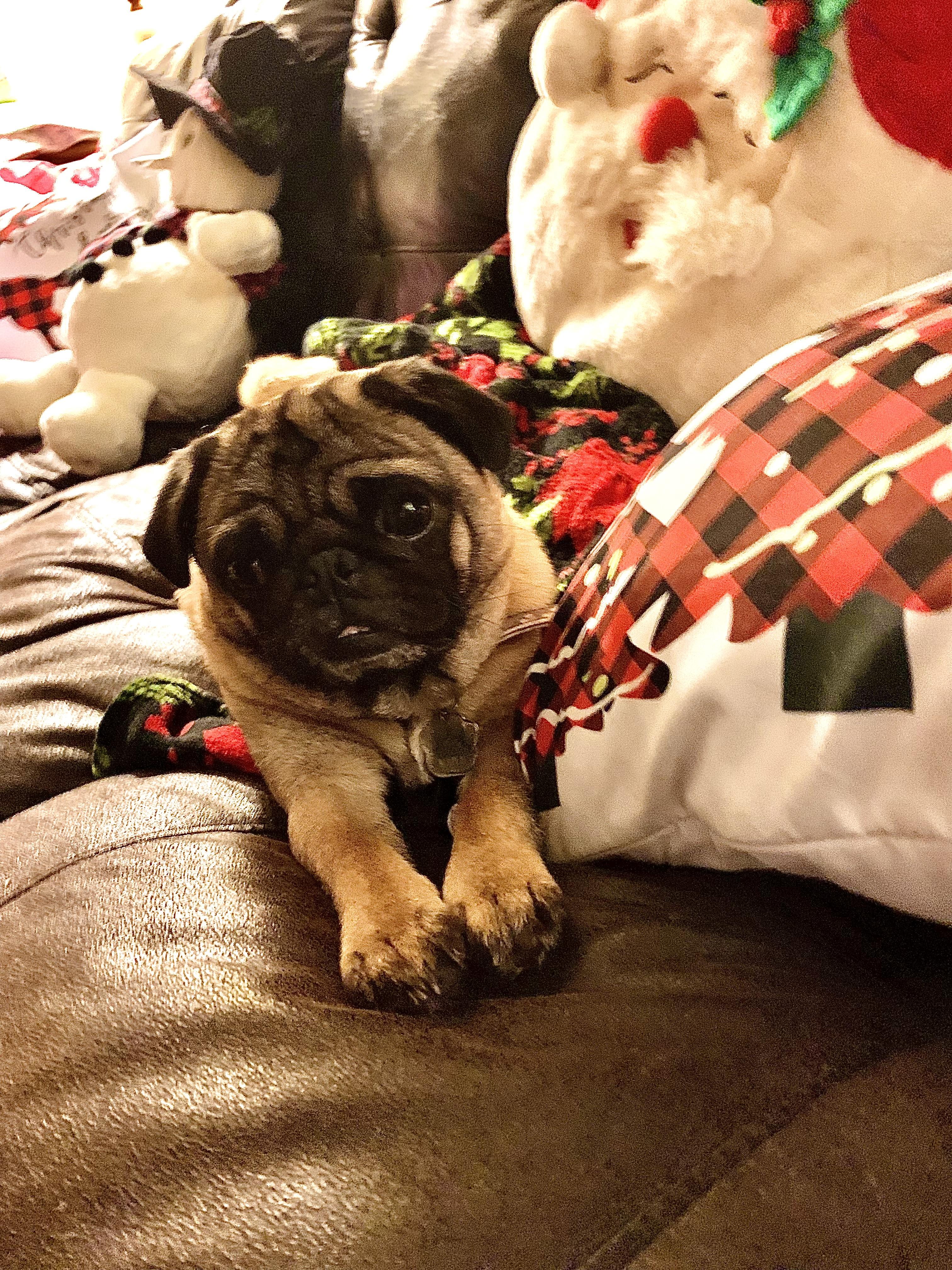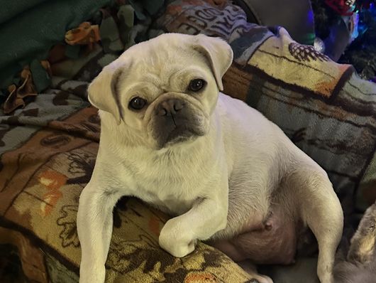 Maple is a female Pug. Carefully selected as a great representative of her breed, Heidi decided to make her part of their program. Heidi has passed Good Dog’s screening process, which involved a review of their breeding practices, environment, and the mental and physical health of their dogs.