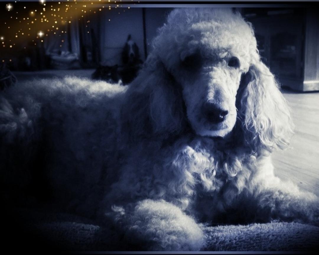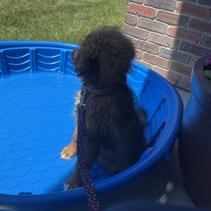 Dad is a AKC std poodle, he has a fun, loving personality, loves to play and always ready to go on adventures. He is the best family dog, thats also calm and cuddles up with us at night at our feet.