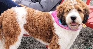 Our Benji is a big loving teddy bear saint berdoodle. He loves going with us on walks and adventures.