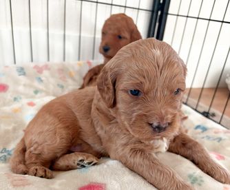 Our Goldendoodle puppies include apricot and red. Maltipoo puppies include apricot, cream, and red. Colors will vary depending on the parent dogs.