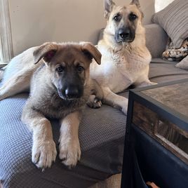 Jesse was raised breeding German Shepherd Dogs with his father. In 2015, we got back into breeding German Shepherds as a family. We started with traditional coat colors, Black and Tan and Sable, but Christine quickly fell in love with non traditional coats colors (white, blue, liver, panda etc).
