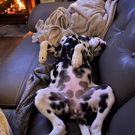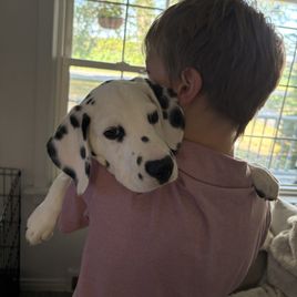 Donna really went the extra mile to help bring our new pup into the family. She kindly agreed to meet me at the airport and expertly answered questions that I had. Our pup was in great health, bathed and groomed. He had all of his paperwork and all shots were current. I am really impressed with Donna as a breeder and thankful for her expertise. My Dalmatian pup loves his new home and keeps us all laughing. Very thankful for a sweet and funny boy.