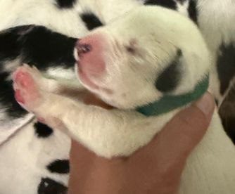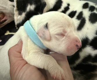 I'm Donna S., the breeder behind Poconopaws located in Newfoundland, PA. Born April 24, 2024. 3 girls, 3 boys. Black & white. All 6 puppies were BEAR hearing tested, and have normal hearing in both ears! Puppies were DNA tested for HUU and 2 out of 6 are LUA not affected! Mother: CH POCONO’S MCDOTTIE’S LUCKY CHARM (CLOVER) CHIC / 174873 Sire: CH Turning Stone’s O Henry J Dam: McDottie ‘N Poconos Next Destination. Owned & Bred by: Donna Simpson Father: Pocono’s Diesel Van Valentine Sire: AKC GR CH Fiacre’s I’ll Have Another At Rim Rock ( Guinness ) Dam: Pocono’s Reaching For The Starburst. Owned & Bred by: Donna Simpson Litter will be 25% LUA Both Mom & Dad have bilateral hearing. DNA testing will be done for HUU. BEAR hearing test will be done at 5 weeks of age. Puppies will be microchipped with Akc reunite, puppies will be dewormed every 2 weeks, and the first set of shots will be given.