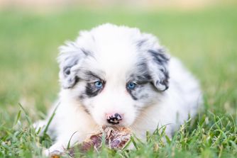 Our puppies include slate merle, blue merle, gold, white and blue, and white and blue merle. Colors will vary depending on the parent dogs.