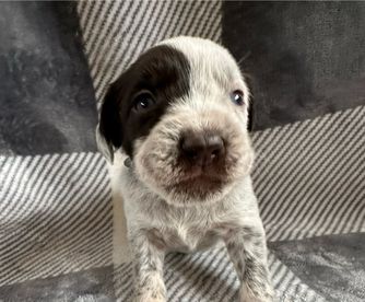 Kate is amazing! I ended up rescheduling my drive to fly and get Billy, and she was completely understanding the entire time. Her staff was amazing, welcomed me immediately, and I adored the farm environment. She immediately offered to show me not only his mom, but a sibling to get an idea of what he’d be like older, and sent us home with some pet food. I am honestly so happy I came in person. I wanted to wait to write my review, but there was no need. At almost a year old now, I can confidently say: Billy is the BEST male dog I’ve ever had, and tied with my childhood Papillon for my best dog ever!! So cuddly, so sweet, friendly with all people, pets, and other animals (unless you’re a bird! Beware lol). He’s named after the Saw Puppet Billy whom he vaguely resembles, but he has more of the personality of Billy from Billy & Mandy if you know what I mean. He’s got three brain cells that take turns controlling the body: Forward, Inhale, and Cuddle! He’s my first dog to give hugs, and ask for human hugs. He excelled in his puppy obedience class, is great at the groomers, and came pre socialized. After having him for about 9 months, no health issues of any kind and is very sound in the hips/joints. Not doing OFA testing since he’s not being bred, but I’d imagine he’d pass with flying colors, which means he was well bred. Seriously I am just SO thankful for Kate and her dogs, and will definitely be getting my next dog (whether Setter or Wirehaired Pointer, her male pointer that free roams the farm made me fall in love) here!! Incredible bird instincts as well, if that’s what you’re looking for. Nothing faster or sweeter than these Wisconsinite Cheetahs 💕❤️