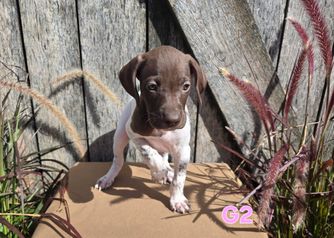 Very happy with our new puppy very smart her name is nottia chance couillard is getting along pretty well with my 4 year old gsp was a little ruff at beginning but mostly all good now thank you