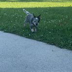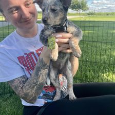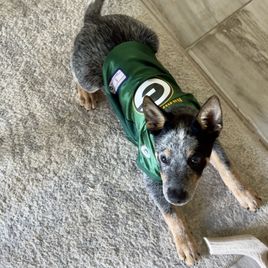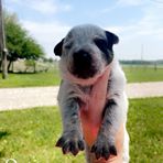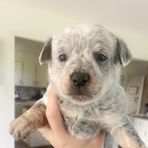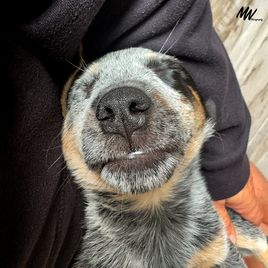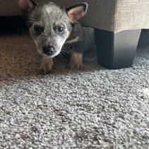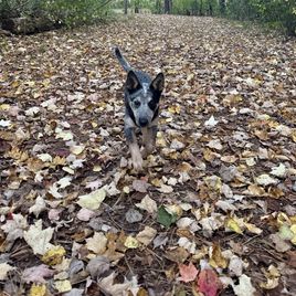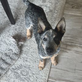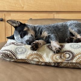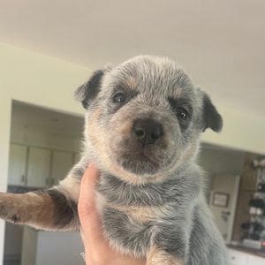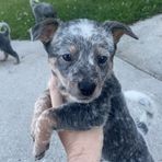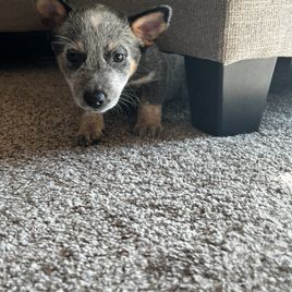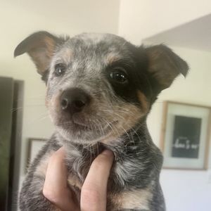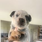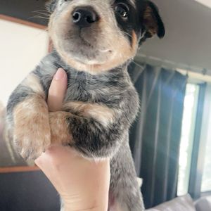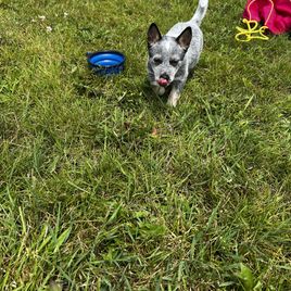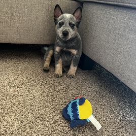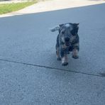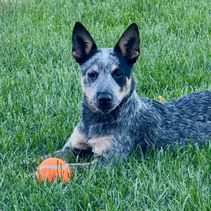 In one word, Jessica, was simply AMAZING to work with. I lived several hours away from her. She was very careful to vet me fully, intent on finding her puppy a good and healthy home. She explained many of the different traits of the Blue Heeler breed, making sure that I understood what I was getting into. She worked with me and stayed in contact with me all the way up to the point of pick up. At pickup, she had me meet the mom. She supplied a blanket with the smells of his liter mates on it, a bag of food to start off, and made sure that our interaction was good and that she felt comfortable with me. Roo is such an absolute sweetheart. I named him after kangaroos from his native country. Everybody loves him. He is a bundle of fur energy - ALWAYS on the run, chasing balls preferably. We get out for walks and he is very social with other dogs and LOVES people. On one 3 mile walk we had interactions with over 30 people. He is SUPER smart. At 7 months, he has already mastered a whole plethora of commands. He walks off leash and will drop to the ground and stay there when I utter the word, ”CAR”, only moving again, after I say, “LET’S GO”. He is also very attentive and wants to make sure that his person is OK. If we go on walks, and he is out in front, he stops and looks back every so often to make sure that I’m still following behind. Potty training was a little bit of a struggle as he was so smart and stubborn, so I had to use Kennel training to fix that, but now he sleeps with me and has had no issues being left alone in the house for short periods. He is a lover and a snuggler and can get into DogTV. Oh, and he LOVES chasing squirrels.