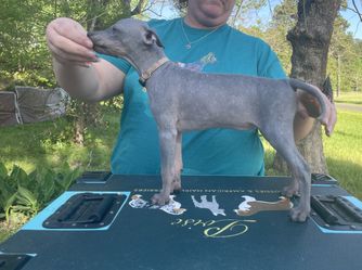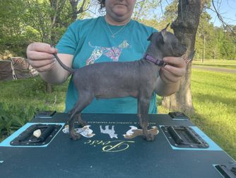 I'm Angie C., the breeder behind Poise Aussies & American Hairless Terriers located in Cleveland, TX. Our focus is on the show ring. We strive to improve with every generation by studying pedigrees to try and make the best match for future generations. A show dog requires an excellent temperament to withstand the stress and that in turn makes for a great pet that can adapt to anything quickly. Our primary goal is to breed dogs that fit the ideal standard and temperament that excel in all venues.