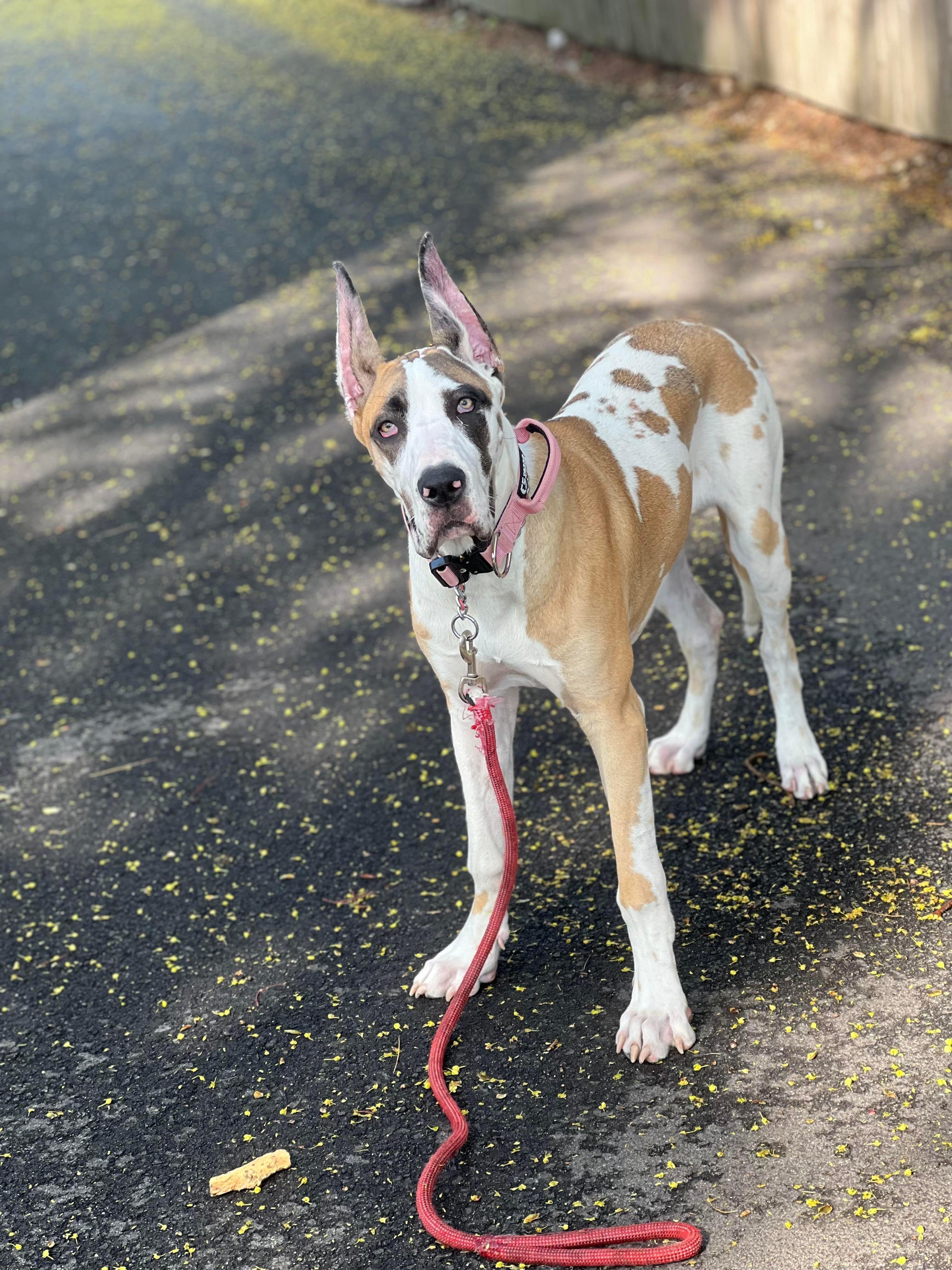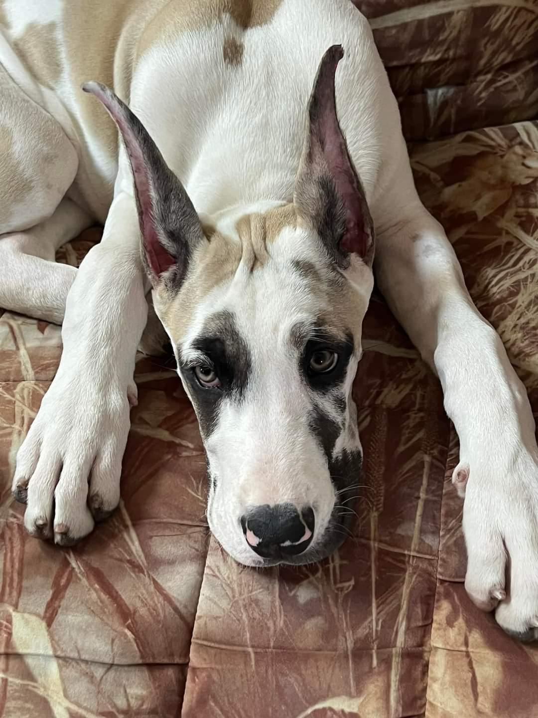 Laurie was incredibly responsive and assuring during this entire process. I have been involved in everything from conception to delivery of our pup. Keanu is an amazing, smart, snuggle bug of a Great Dane. He was housebroken in a week, crate training was started by Laurie and basic obedience. I would highly recommend Poke-a-nose-Danes as a breeder. I’ll be a return customer!