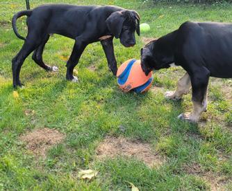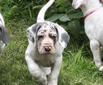 Laurie was nothing short of amazing and still is. Kimber came home almost potty trained. Puppies will have accidents but only 2 in 4 days is amazing. She knew sit and touch and we continue to work with her daily but Laurie has set her up for success. She loves the puppies and treats them like family. She is always eager to answer questions and help in anyway. I will be getting another Dane from her in the future!!! I can not recommend her enough.