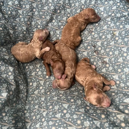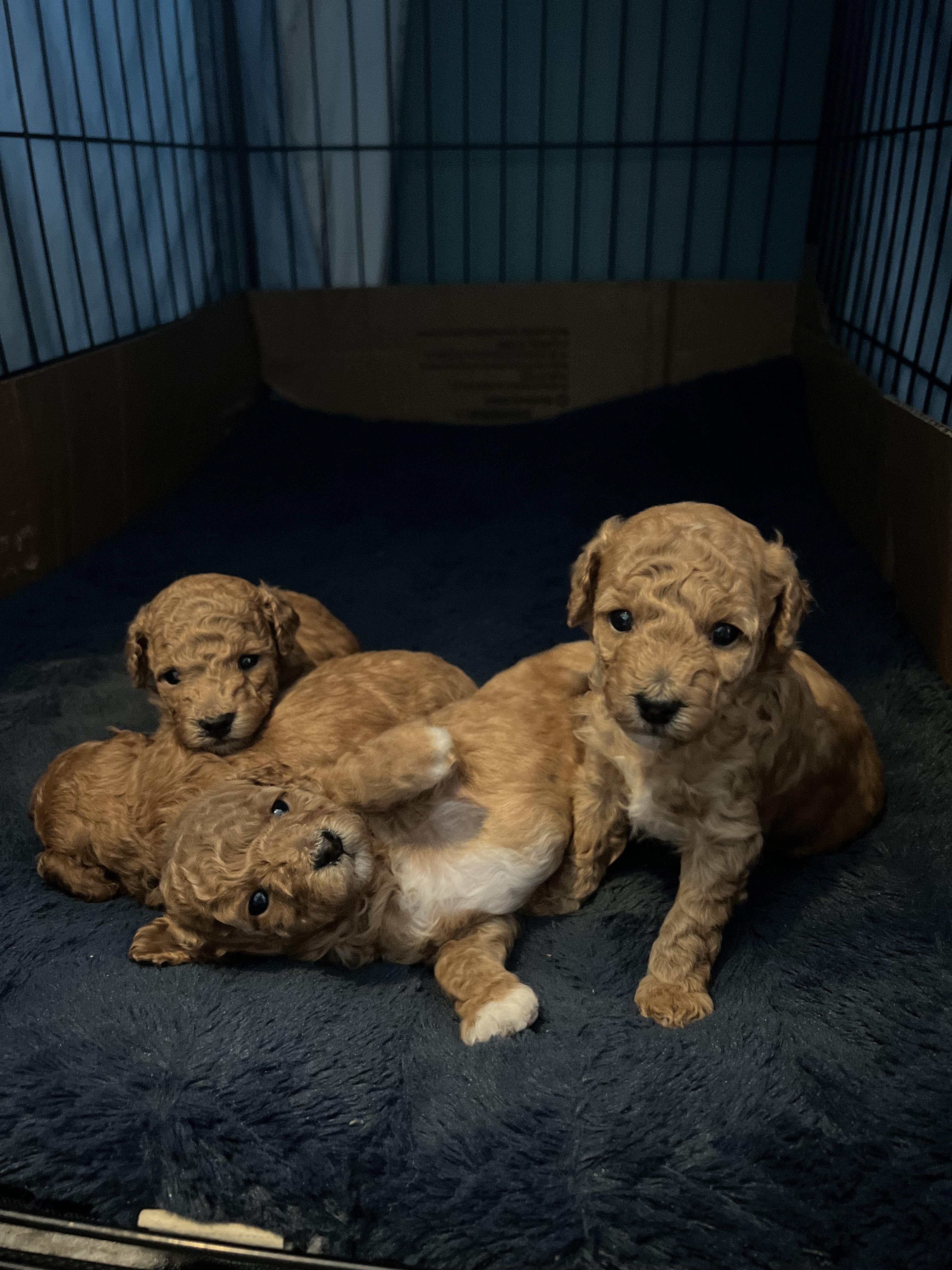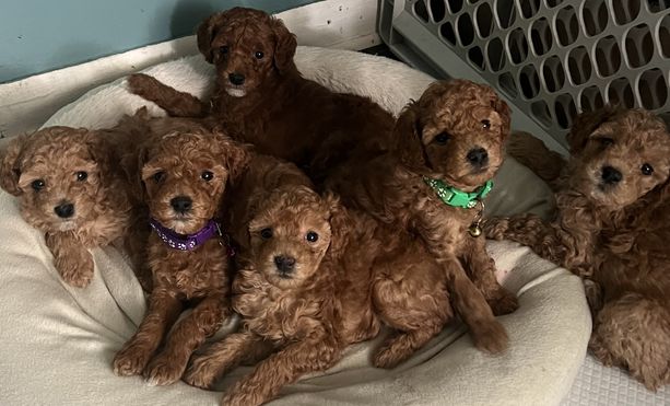 Our puppies include apricot, brown, red, and white. Colors will vary depending on the parent dogs.