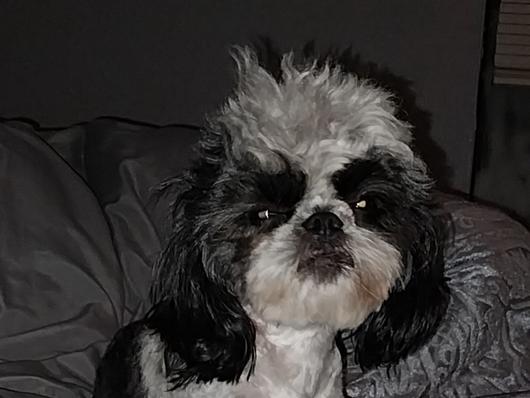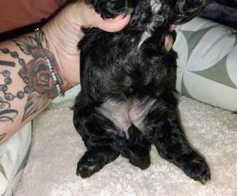 Black and white female Peekapoo.