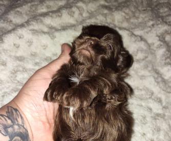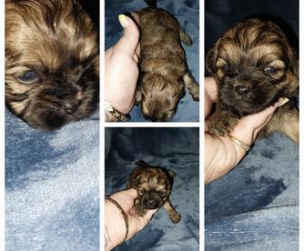 “Teacup peekapoo puppies. These puppies are hypoallergenic and NON shedding dogs. They will weigh around 5 to 6 pounds fully grown.”