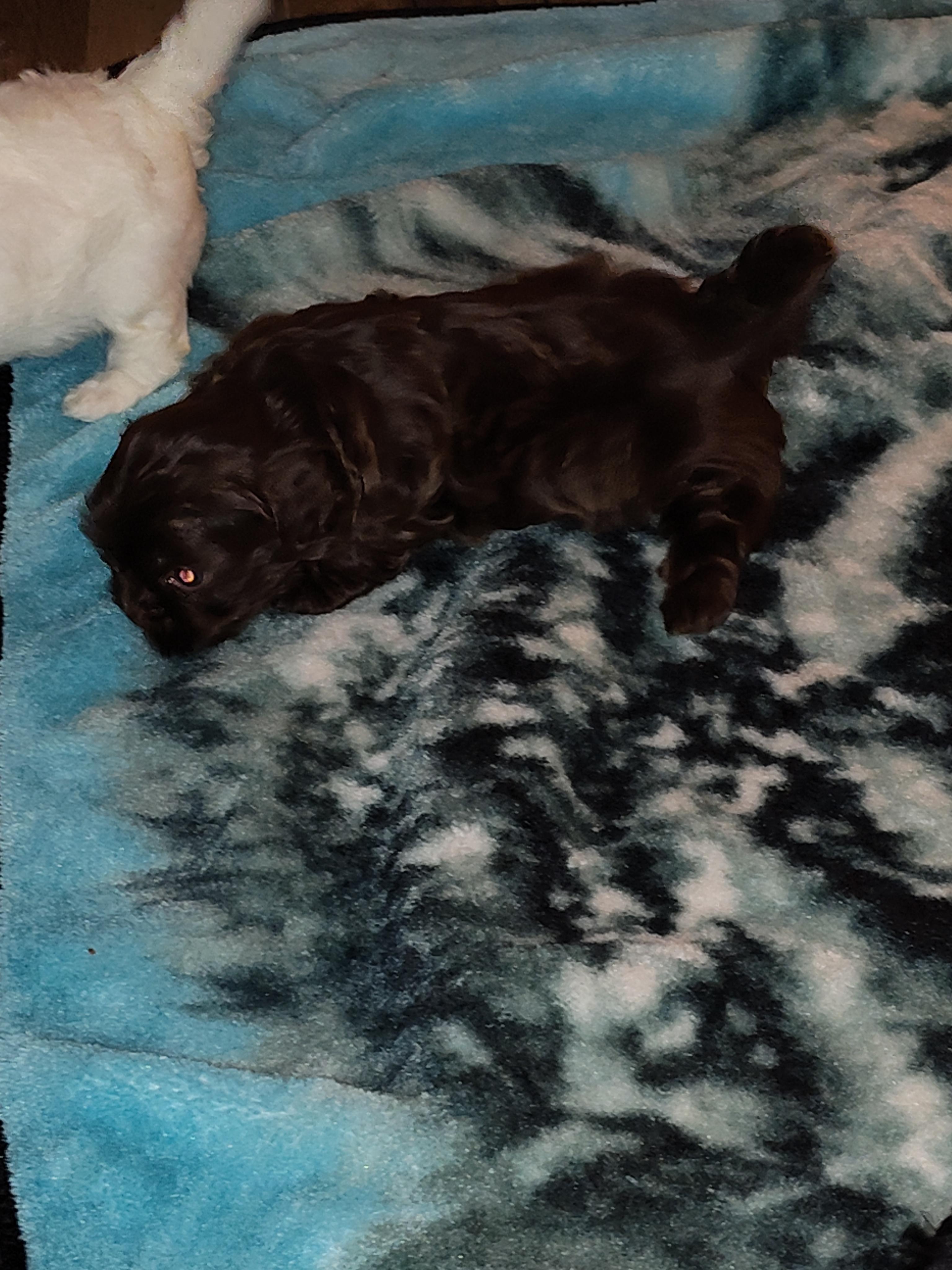 Mocha is a purebred teacup poodle she is a phantom chocolate.