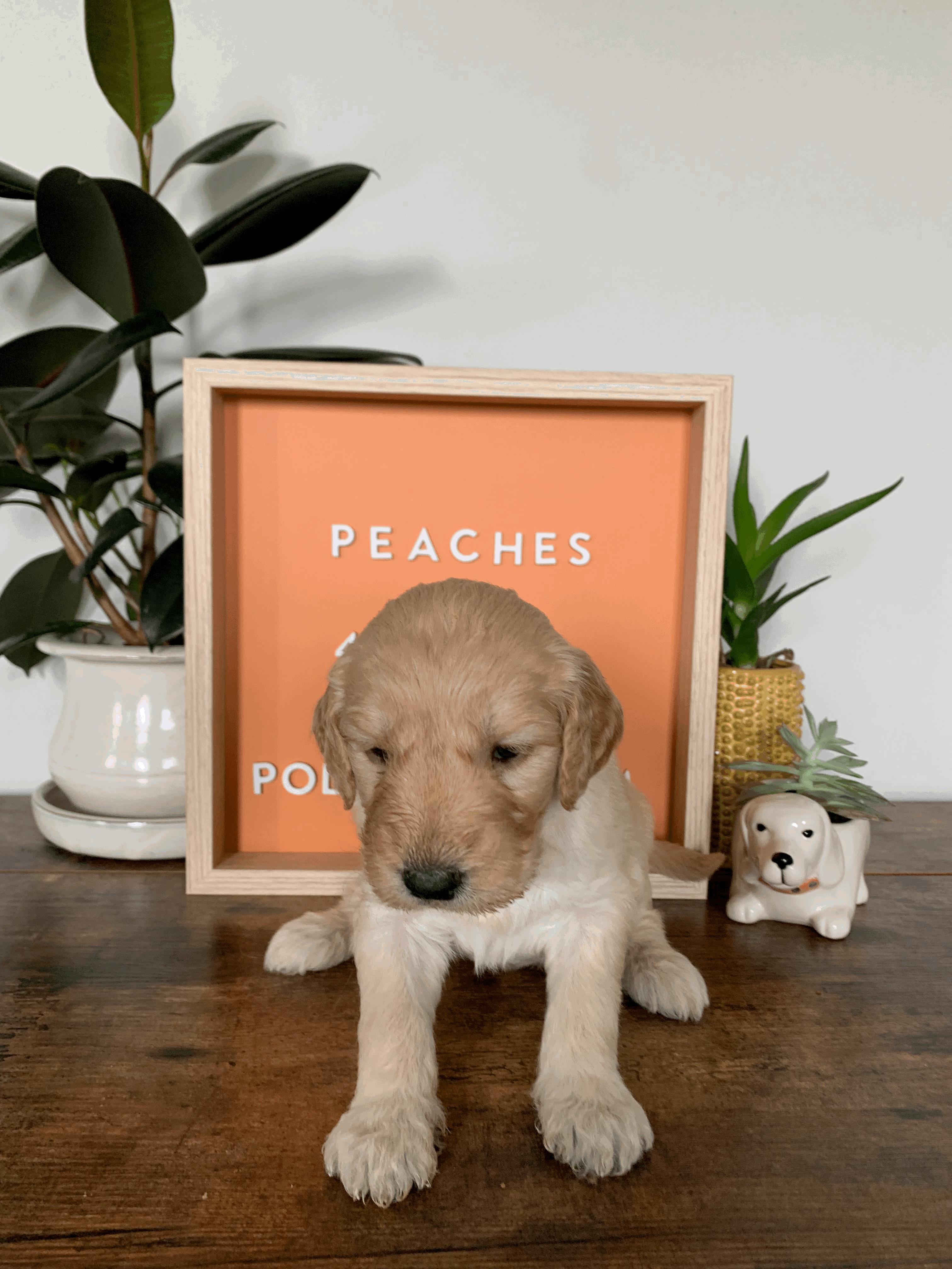 Our Goldendoodle puppies include cream and apricot. Colors will vary depending on the parent dogs.