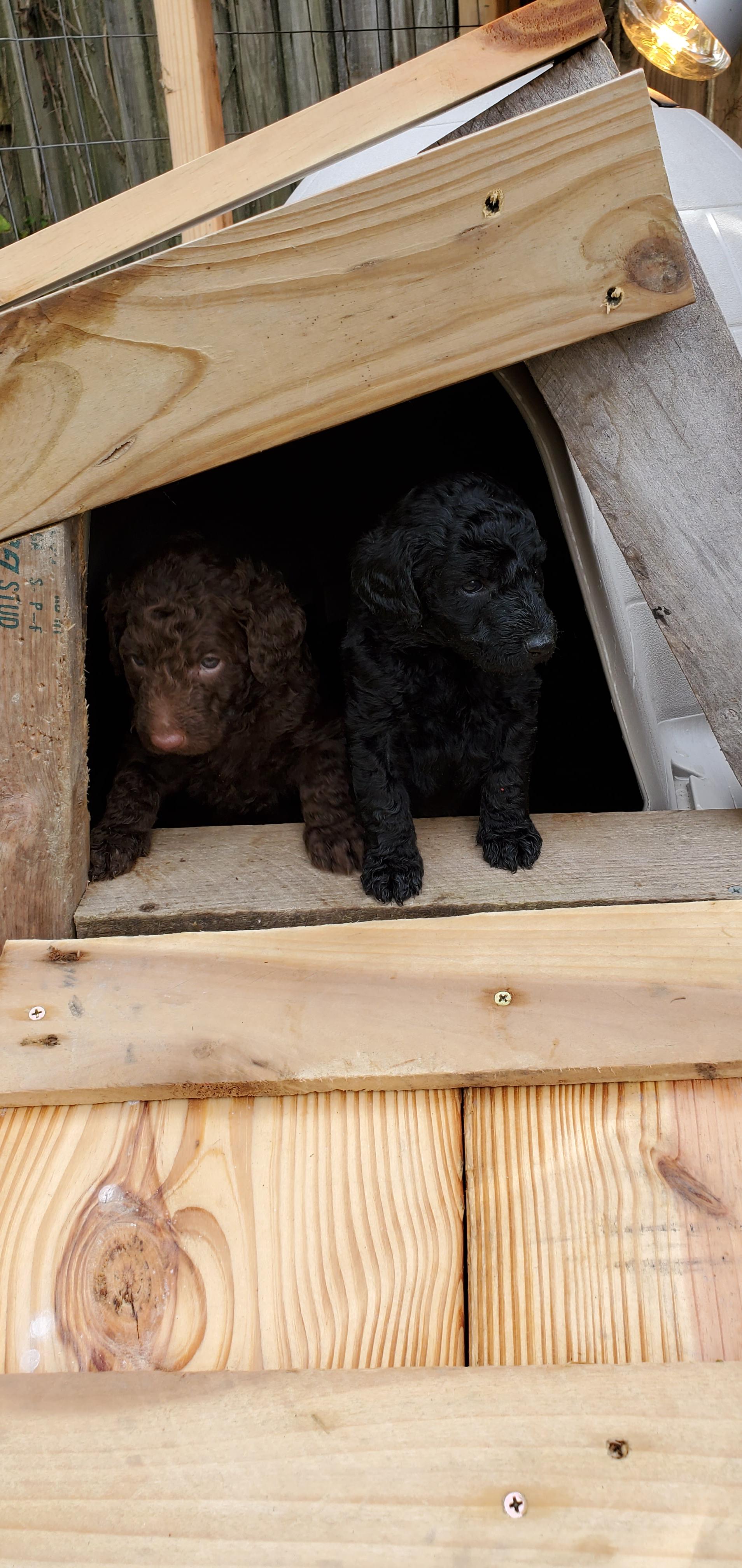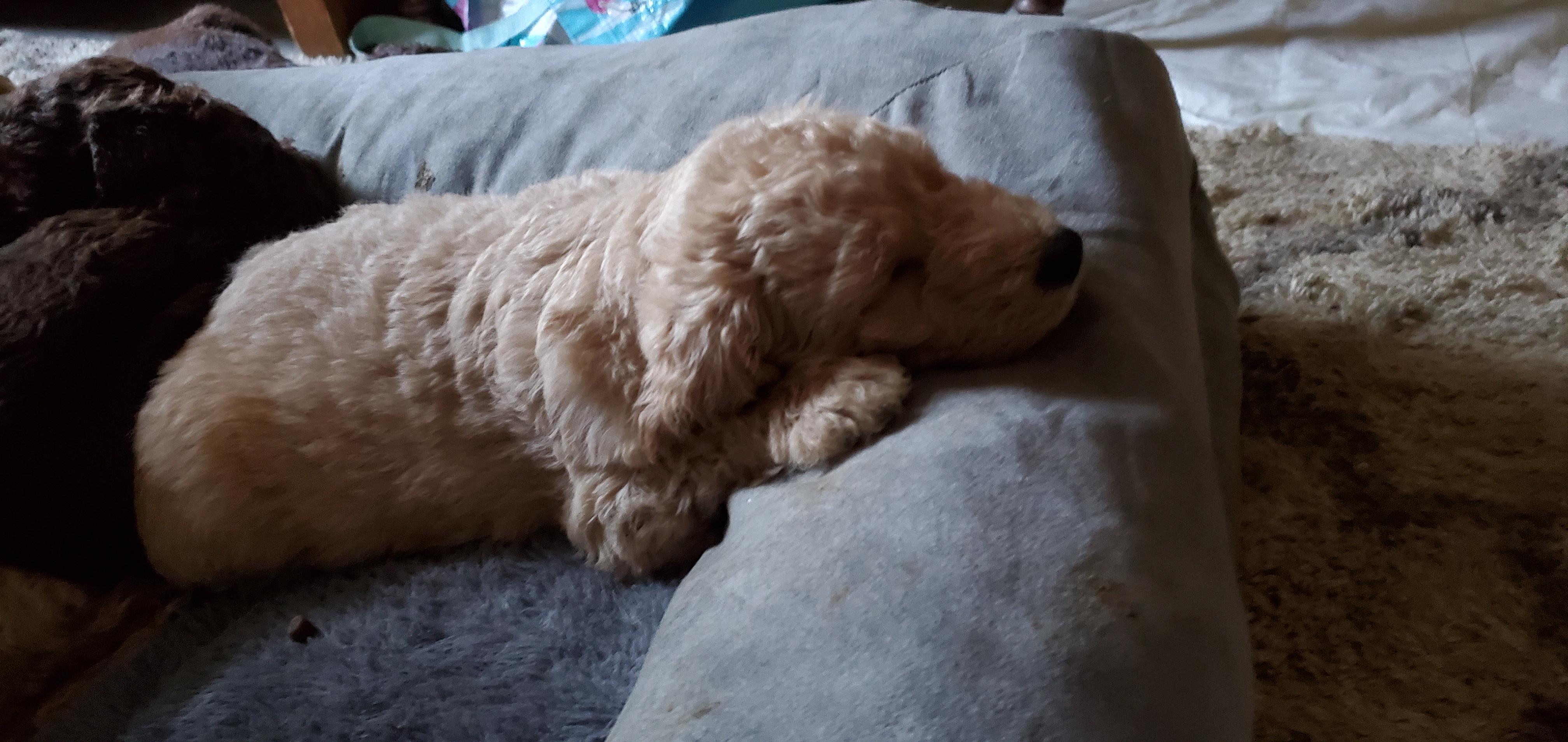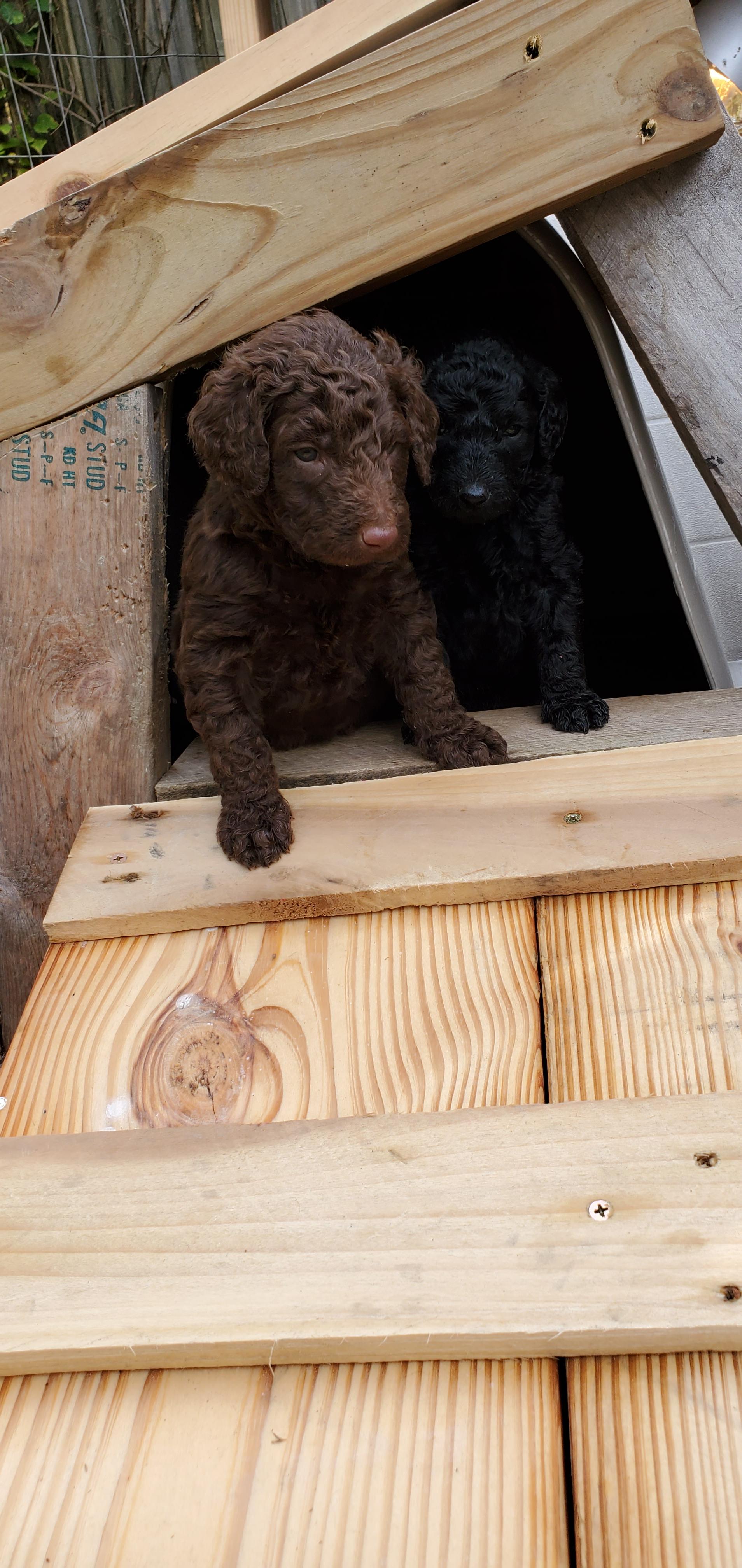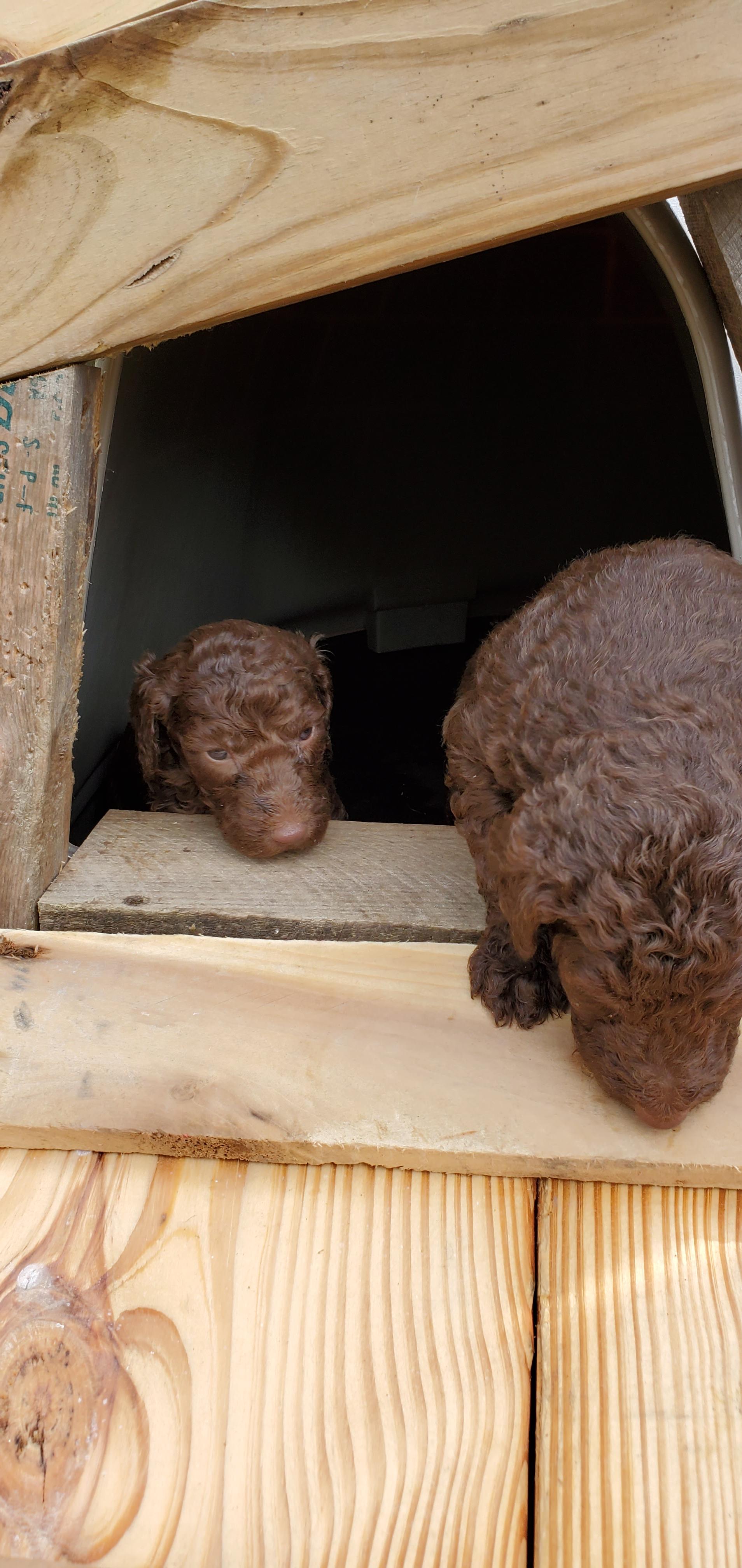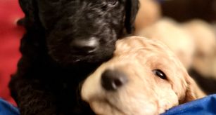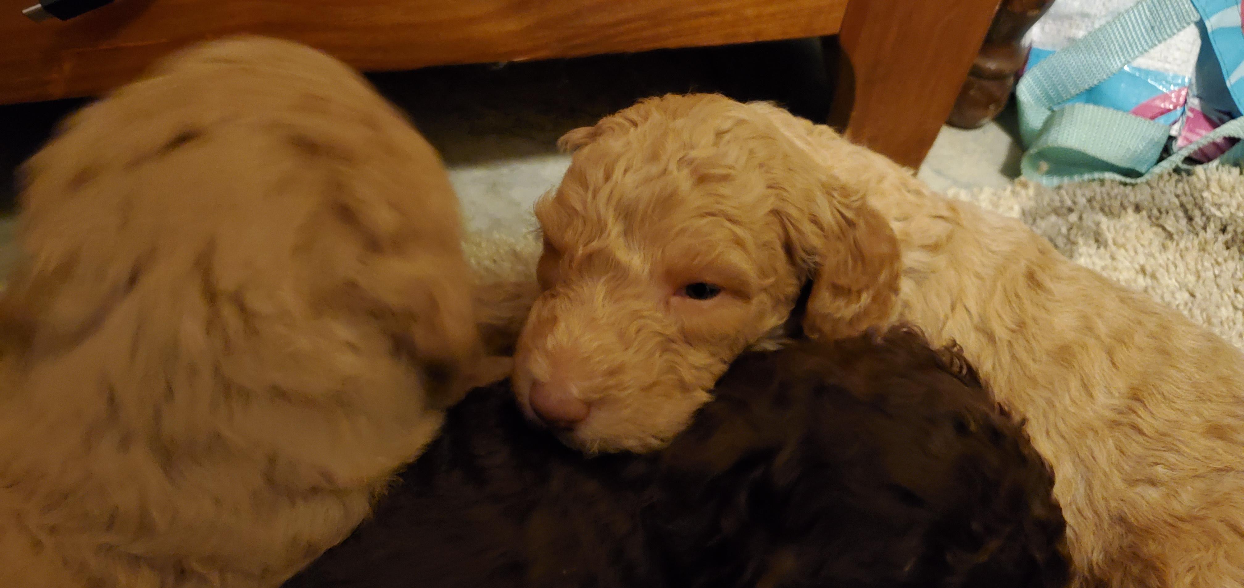 Our Goldendoodle puppies include cream, apricot, chocolate, black, merle, and parti. Poodle puppies include sable, apricot, black, brown, cafe au lait, red, and brindle. Colors will vary depending on the parent dogs.