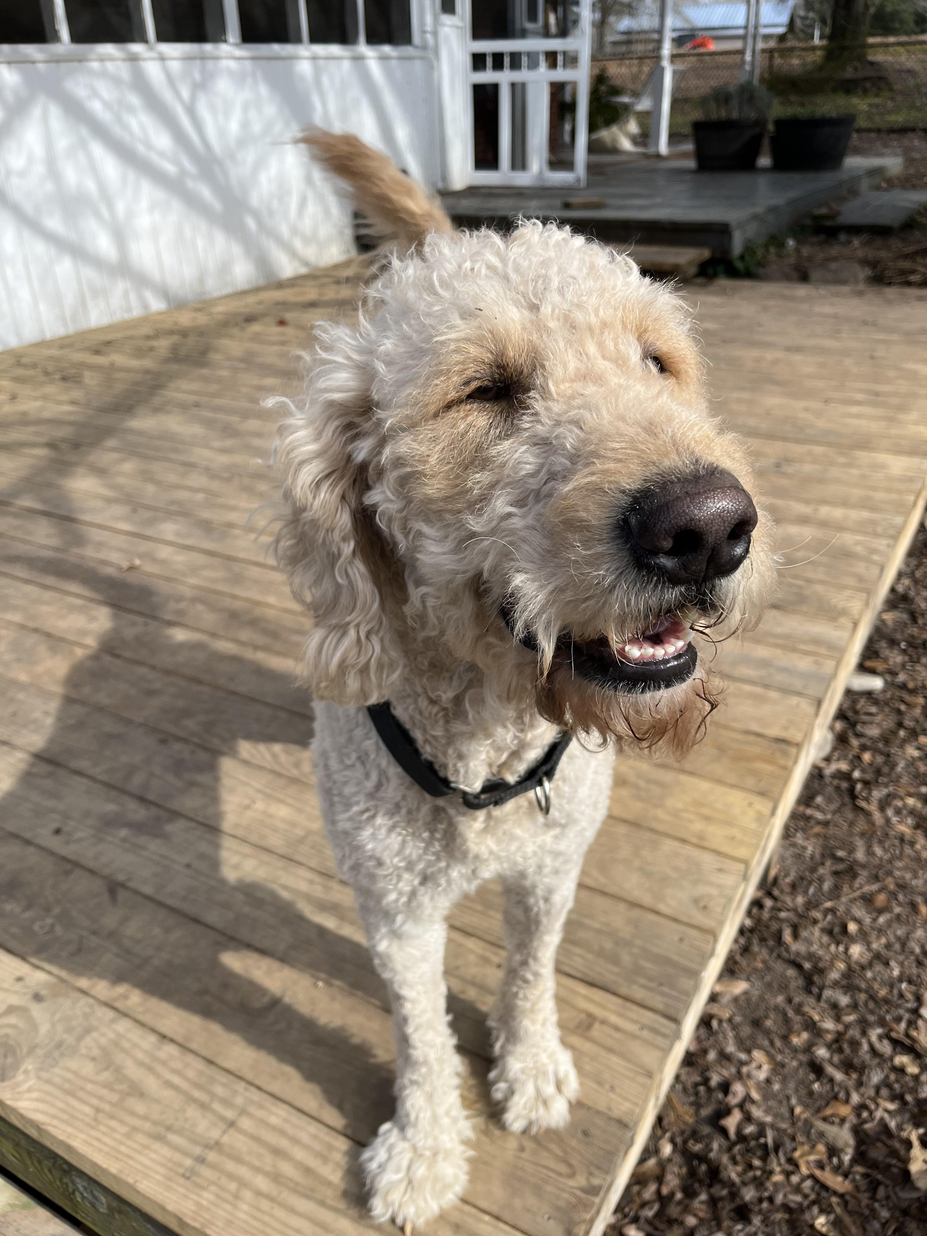 Cooper is a male Goldendoodle. Carefully selected as a great representative of his breed, Melanie decided to make him part of their program. Melanie has passed Good Dog’s screening process, which involved a review of their breeding practices, environment, and the mental and physical health of their dogs.