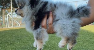 Lollipop is a beautiful blue Merle with tan markings, she is 5.5 pounds and is as sweet as her name. She was born May 29, 2023 and since joining our family she has filled our lives with love. She does not believe in personal space, you are not done sitting when she is already on your lap, regardless if you are a family member or a visitor-if you sit on the couch she is sitting with you