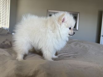 I keep all the puppies until they've had all their shots so rehoming would be at 3 months I want to make sure my babies have a healthy and long life and are setup for success. I breed for personality and good strong genes! like heathy teeth and great eye health and so much more! I want strong Pomeranians not tea cups...