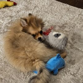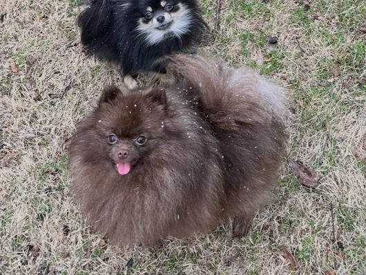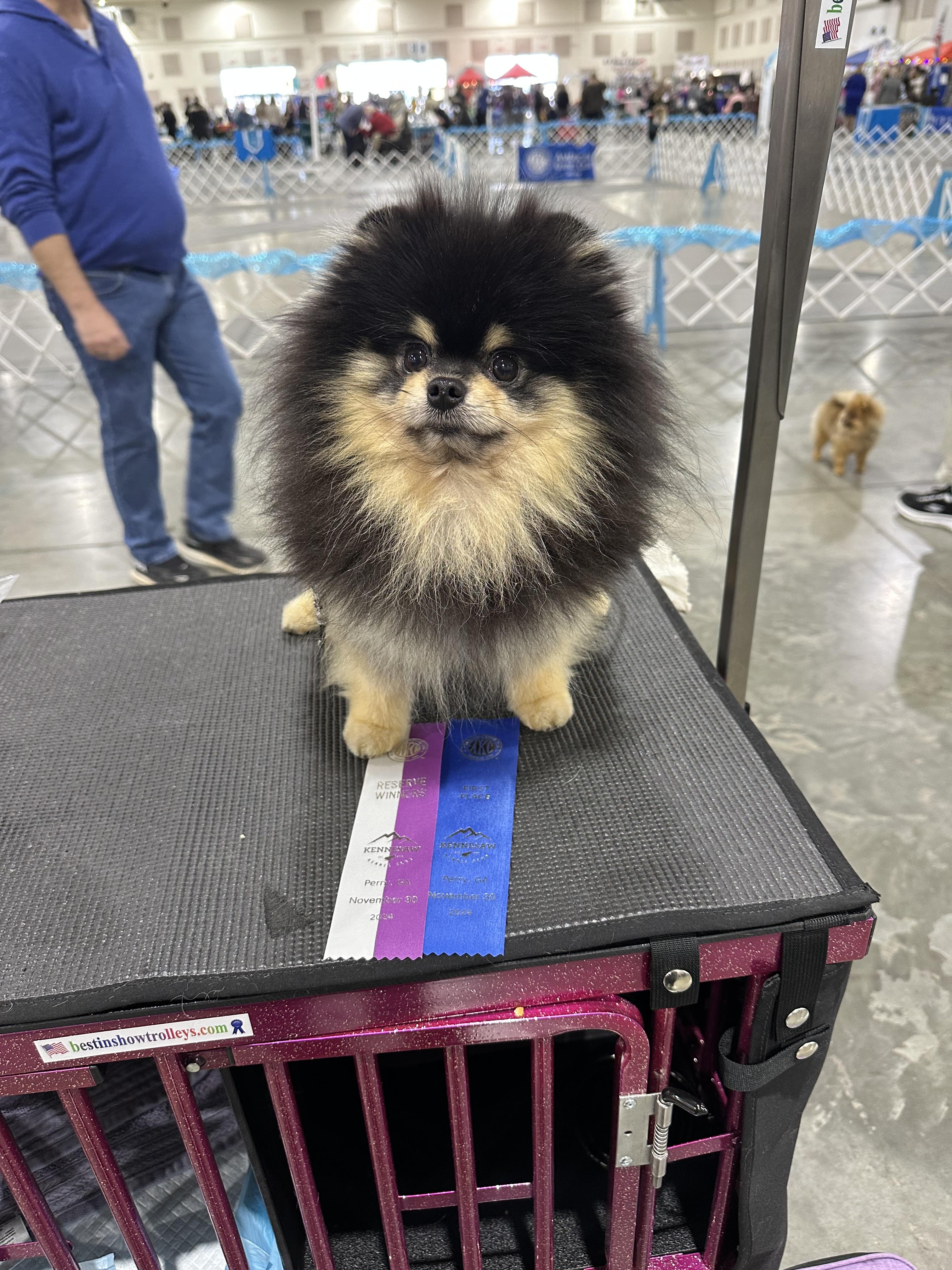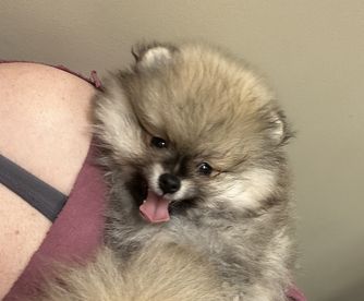 I fell in love with poms when I first started training to be a dog groomer. I got lucky and a show breeder gave me a chance with one of her poms for my first dog. They amazing little companions and it is so rewarding to see my puppies grow and enrich the lives of their new home.