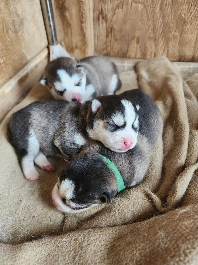 Our puppies include gray and white, tri-color, and black and white. Colors will vary depending on the parent dogs.