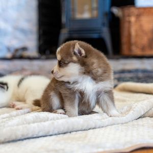 We are very impressed with out puppy from Pomsky Power Puppies, our dog came to us with a polite temperament, and it well socialized with other dogs, cats, and chickens. He has been very healthy and brought so much joy to our lives. We are looking forward to our best friend for life! Gabrielle was such a wonderful dog breeder: pick up was easy and we were provided with all of the essentials that we would need to welcome our dog into our home, including a towel with the smells of his family. We could not recommend her more for adopting a dog.