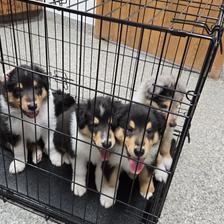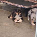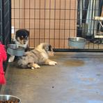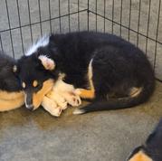 Our puppies include black white and tan and blue merle. Colors will vary depending on the parent dogs.