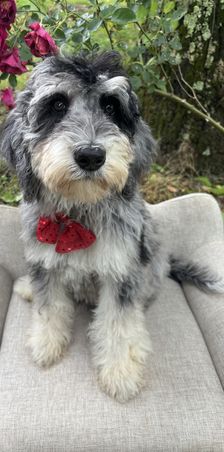 I adopted 3 month old Lightening (now Hero) from Angie. Angie and her husband were both so very nice and knowledgeable. Hero has adjusted so well to our household. He is such a good boy and was already so well trained! He’s completely healthy and vaccinated. He sleeps through the night and is crate trained. He was also mostly potty trained. He’s been with our family for a week now and my kids and all the neighborhood kids love him! Hero is great with our cats. He’s playful but not overly energetic. He’s great on a leash and has been a wonderful fluffy boy.