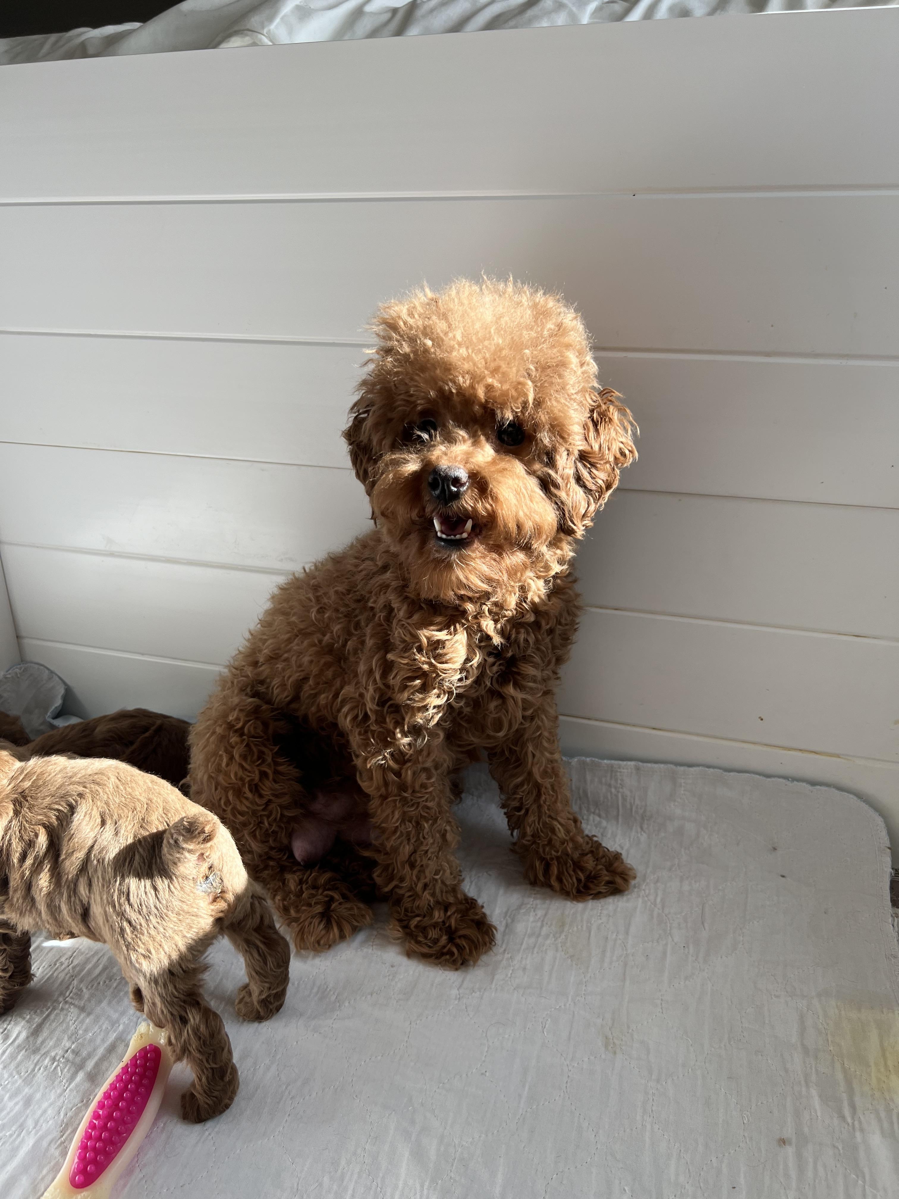 Yolo is a male Poodle. Carefully selected as a great representative of his breed, Julie decided to make him part of their program. Julie has passed Good Dog’s screening process, which involved a review of their breeding practices, environment, and the mental and physical health of their dogs.