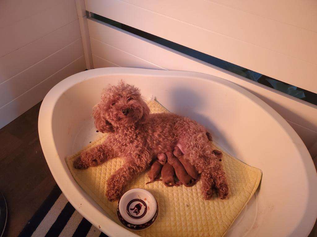 Gamja is a female Poodle. Carefully selected as a great representative of her breed, Julie decided to make her part of their program. Julie has passed Good Dog’s screening process, which involved a review of their breeding practices, environment, and the mental and physical health of their dogs.