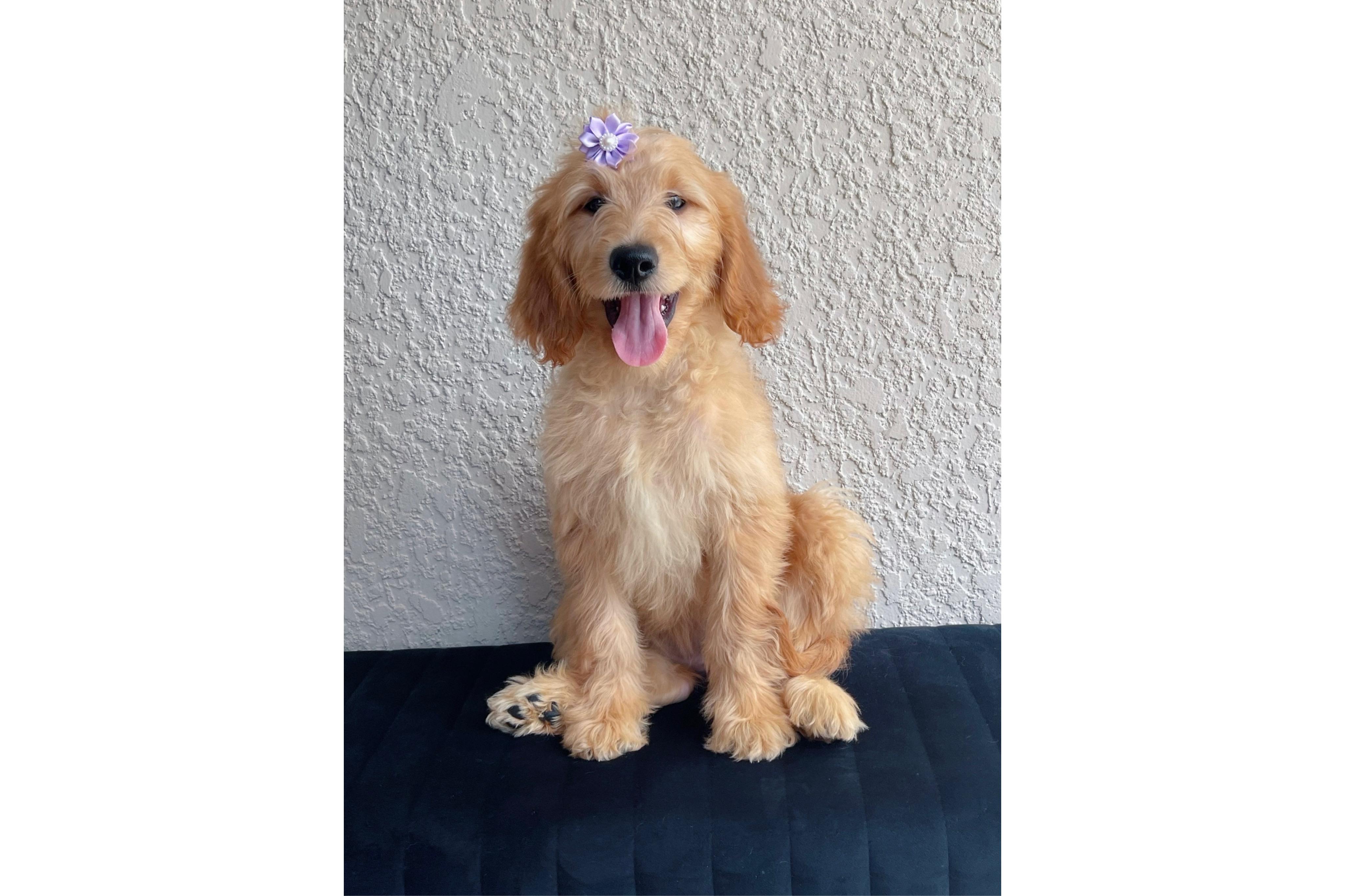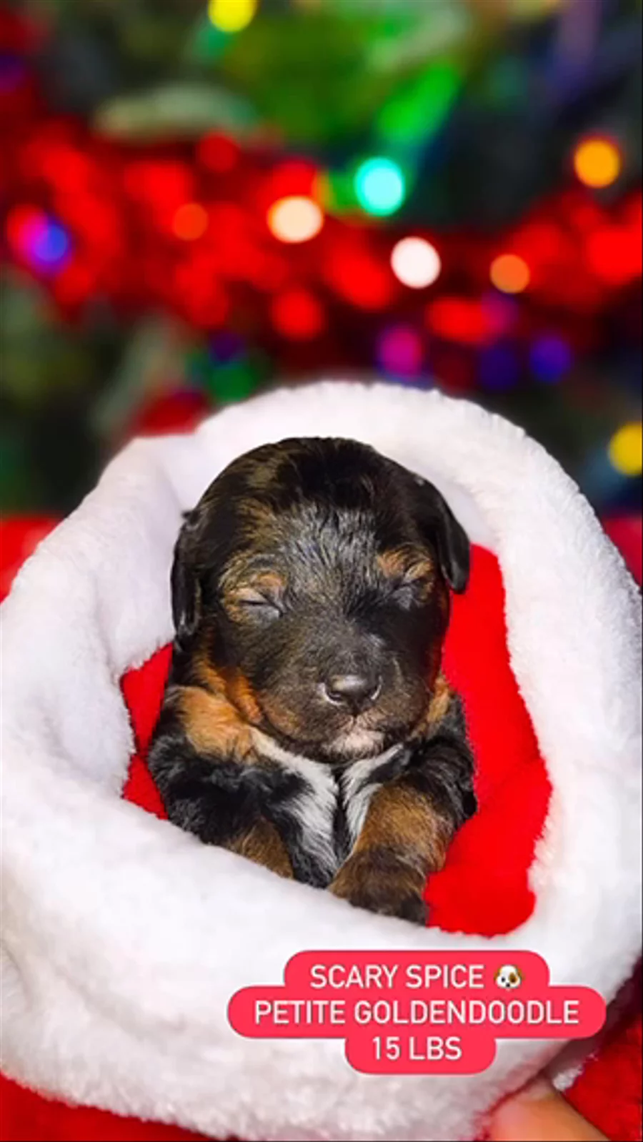 Ava is a beautiful Phantom Petite Goldendoodle. She is 15 lbs of joy & so loving. She’s very smart & enjoys cuddling & spa days getting pampered.