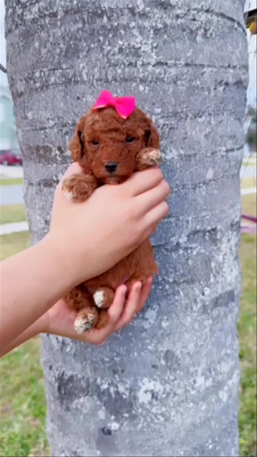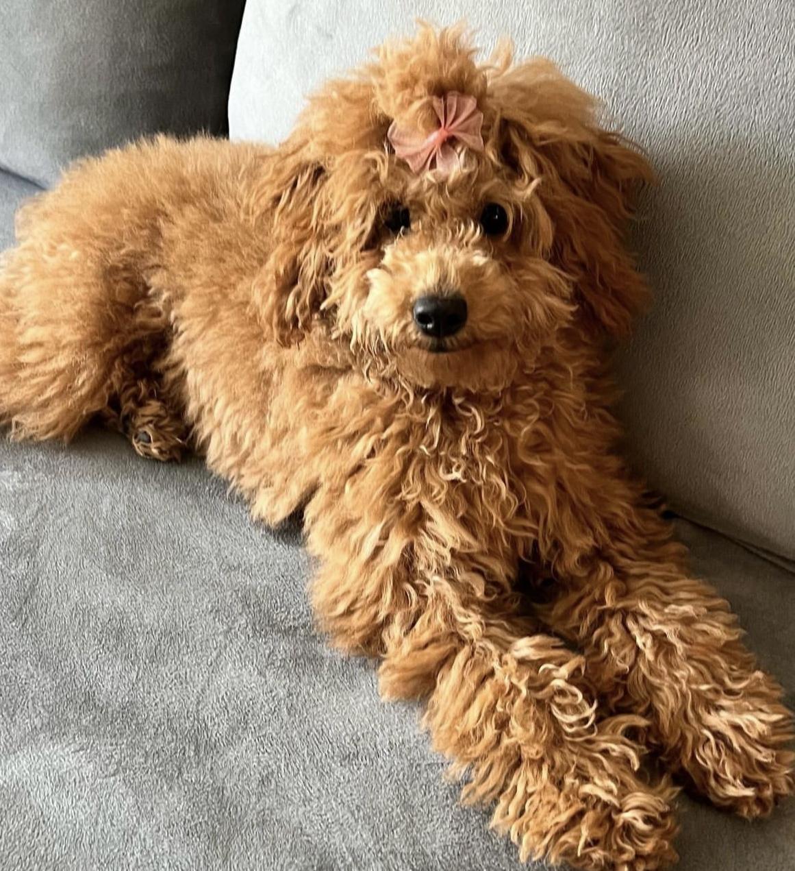 Luna is a red Miniature Poodle. She is very loving & smart. With a beautiful curly coat.