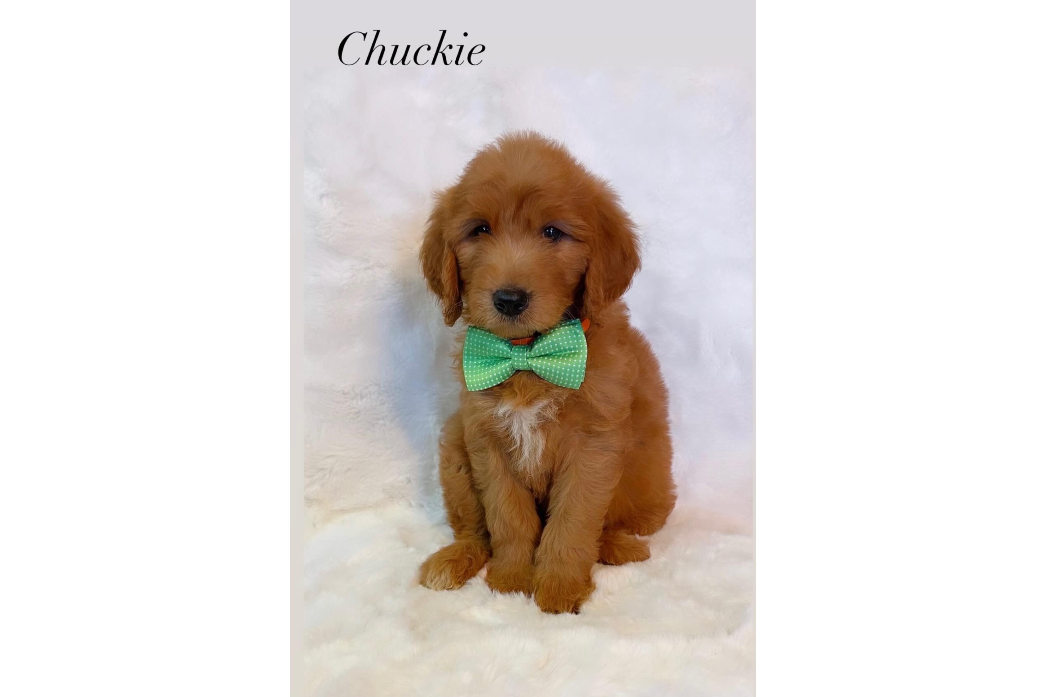 Luca is a handsome red & white parti multigen Goldendoodle. 10/10 red intensity. He’s very smart, sweet & loves to run around outside.