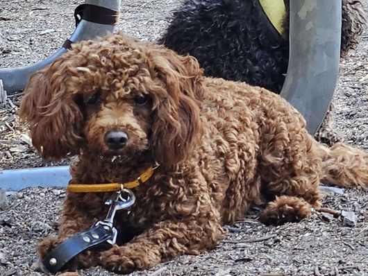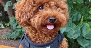 Mocha is very social and intelligent. She’s great at sensing people’s emotions and understands her place well. She enjoys walks and loves basking in the sun in the backyard. She gets along well with other dogs and sometimes goes camping with us. She’s a wonderful red poodle who also gets along great with our kids. Her body is slightly long, so she may look a bit bigger than a toy size but smaller than a miniature. She weighs 9 lbs.