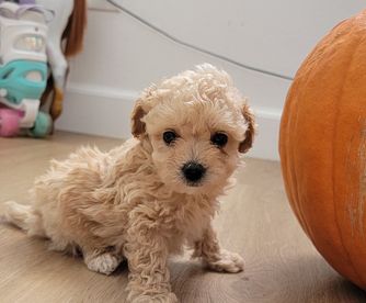 Maltipoo puppies are apricot. Colors will vary depending on the parent dogs.