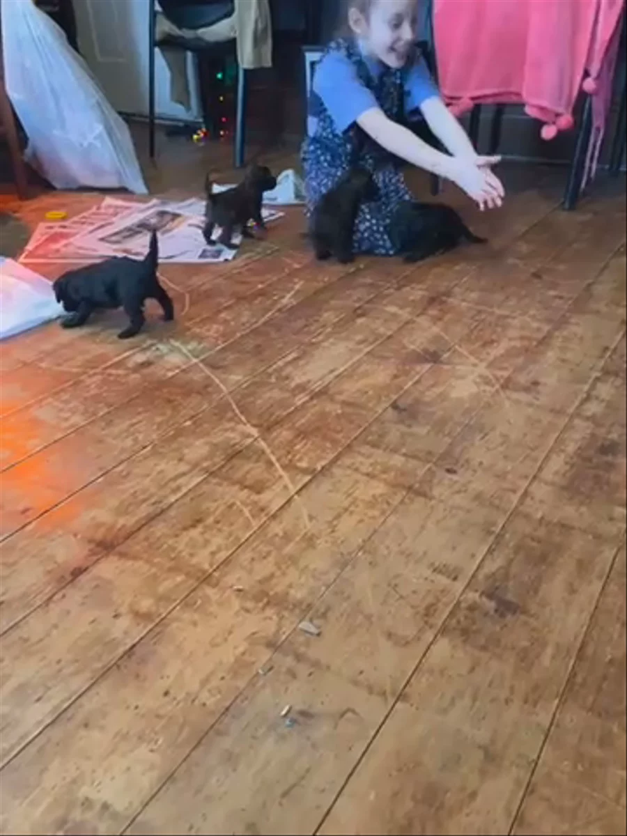 The puppies are running around and having fun! Getting socialized! They are healthy and loving life.