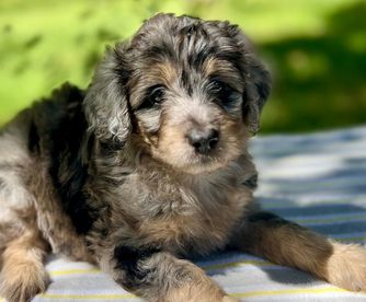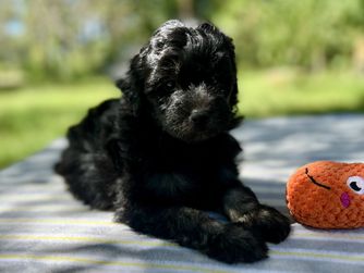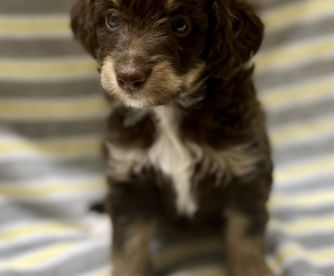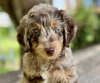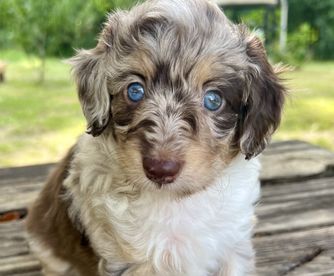Our Aussiedoodle puppies include toy and mini sizes. Sizes will vary depending on the parent dogs.
