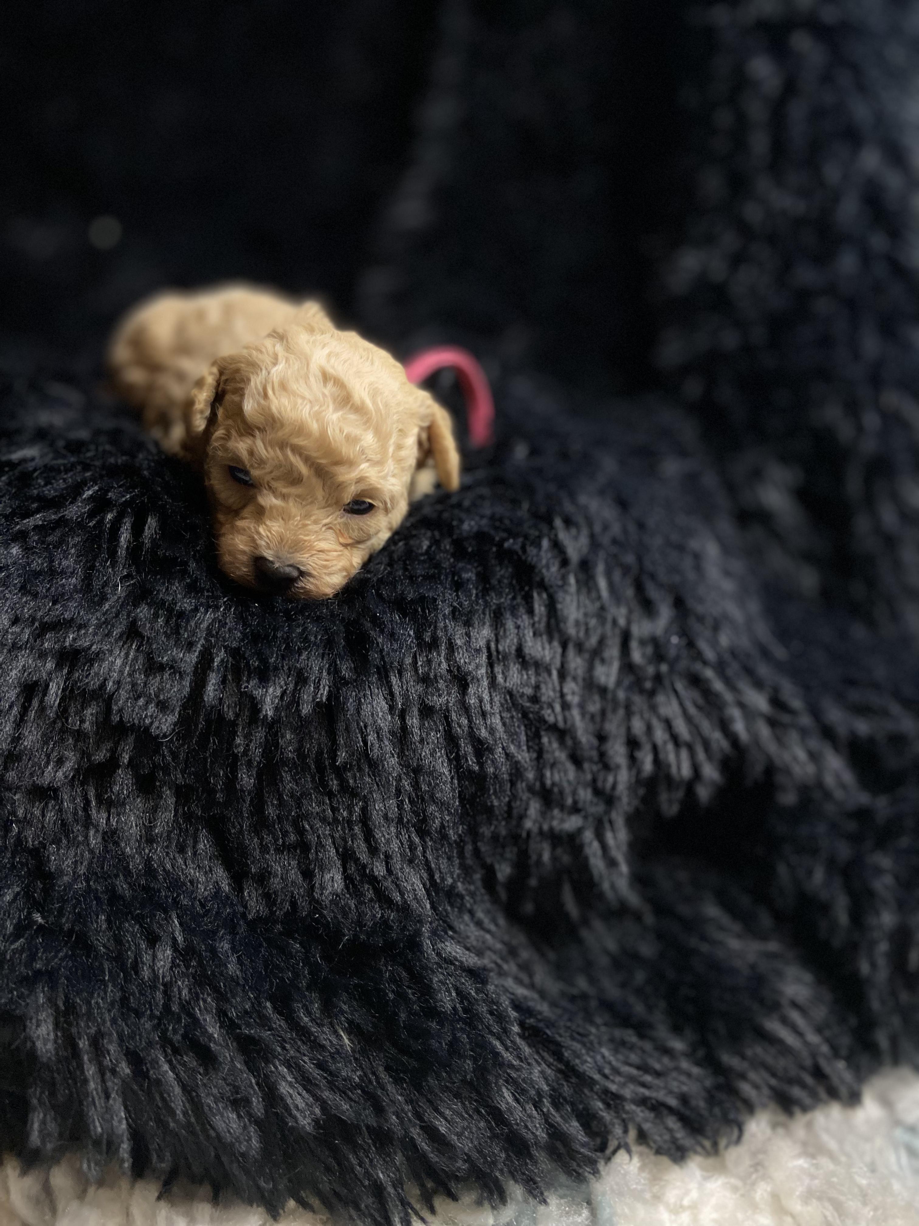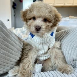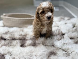 We are so happy with the choice we made getting little Cooper from Poodles Are Mixy. Kiara was super responsive with our back and fourth messages and she answered our barrage of questions regarding Cooper's parents and lifestyle. We absolutely fell in love with him from the cute picture she had on the website, but we unfortunately live 800 miles away so we couldn't go see him. Kiara set up a video call so we could see him while also getting to know Kiara and asking more questions. After all was said and done, little Cooper was in our home a week later after having flown via a nanny service. The whole process was easy, safe and had complete trust in Kiara. Cooper is literally the great little puppers we could have asked for. He's so smart and a complete love-bug. He's great around other people and does nothing but give little kisses. We are also impressed on the crate traing Kiara had introduced to Cooper. Night one, we were expecting whining and barking when we put him in the crate for sleeping. What was got was silence and a happy sleeping pup. It's been a breeze training him and he adapts so well to our lifestyle. We highly recommend Poodles Are Mixy to anyone looking for well tamed, intelligent and loving pups!