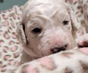 Pearl is a female Poodle. Carefully selected as a great representative of her breed, Rebecca decided to make her part of their program. Rebecca has passed Good Dog’s screening process, which involved a review of their breeding practices, environment, and the mental and physical health of their dogs.
