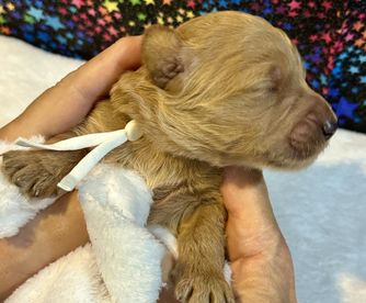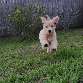 I had a great experience working with Terri. She would send me pictures of my puppy Sky when I would request them and welcomed me and my family to her home to meet Sky, her siblings and her mom. I love my baby Sky! She is so smart and silly. She is also growing up beautifully. Highly recommend Standard Goldendoodle and doodles.