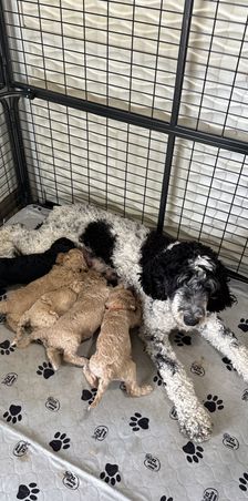Lanette was wonderful to work with. She let me meet the poodle parents before puppies were born. I also got to meet puppies at 1 month of age. Lanette always answered my questions promptly and provided take home material about puppy care as well as toys for puppy! Lanette’s daughter was also very helpful. I’ve had Esme’ for one week now. Puppies are the best when you work at training them. I think Esme’ is very smart (of course) and is learning new things every day. I’m so delighted to welcome this new friend into my life. Thank you Lanette!