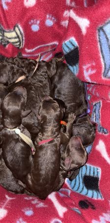 Our puppies include apricot, black, brown, red, parti, phantom, and brindle. Colors will vary depending on the parent dogs.