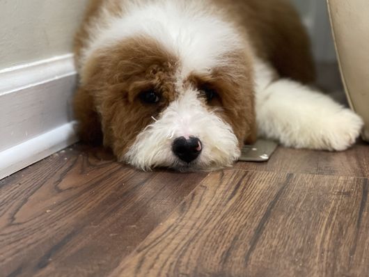Zuri is a female Sheepadoodle. Carefully selected as a great representative of her breed, Carly decided to make her part of their program. Carly has passed Good Dog’s screening process, which involved a review of their breeding practices, environment, and the mental and physical health of their dogs.