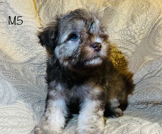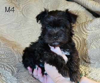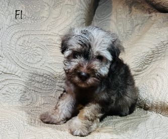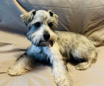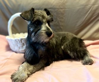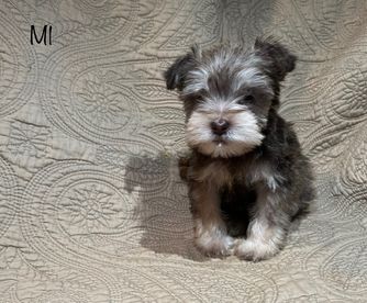 Our puppies include salt and pepper and black and silver. Colors will vary depending on the parent dogs.