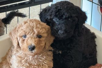 Our Bordoodle puppies are mini size. Poodle puppies are miniature size. Sizes will vary depending on the parent dogs.