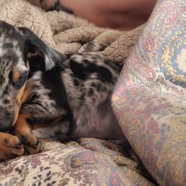 Tiffany was great! She even drove 2 hrs to meet us and waited 2 more for us bc we got lost!! She was honest and. Very professional takes it very serious and does everything That She needs to do for the puppies before they leave her care. The first thing she did.when we got her home was pee on her pad as soon as we got her out. I think I have never seen a dachshund as beautiful as her.she has 1 blue eye and 1 black eye and she is dapple. I can't walk by 1 person in a store and don't go nuts over how pretty andsweet she is. It was the best experience I've ever had as far as getting an animal and I recommend to anyone that wants to buy a dog!