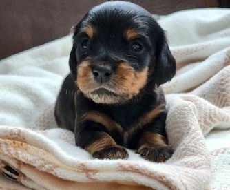 Our puppies include chocolate and tan and black and tan. Colors will vary depending on the parent dogs.